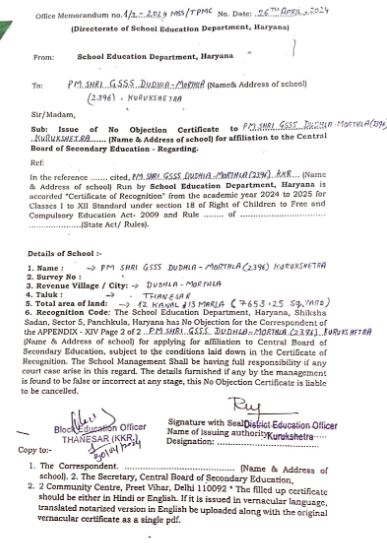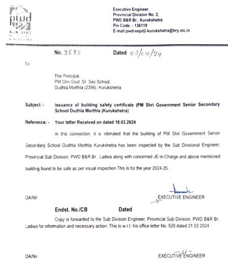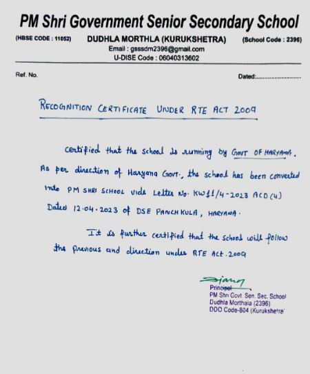 04 | COMPLETE ADDRESS WITH PIN CODE | PM SHRI Senior Secondary School Dudhla Murthla, Dist. Kurukshetra, Haryana |